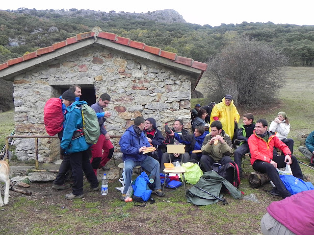 Continuamos la marcha descendiendo y cruzando una pradera; empezaba a llover. La pradera tenia huesos de animales y vimos a los buitres como nos sobrevolaban esperando que alguno de nosotros cayera, pero fue inútil para ellos, nosotros aguantamos. Encontramos una cabaña de pastores y decidimos reponer fuerzas y refugiarnos de la lluvia que empezaba a caer.